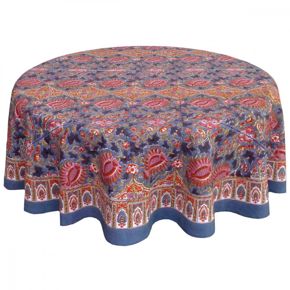Hand Block Printed on 100% Cotton ROUND TABLECLOTH